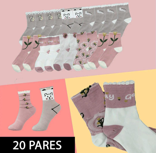Kit 10 pares de calcetines para dama + 10 pares de calcetines infantiles