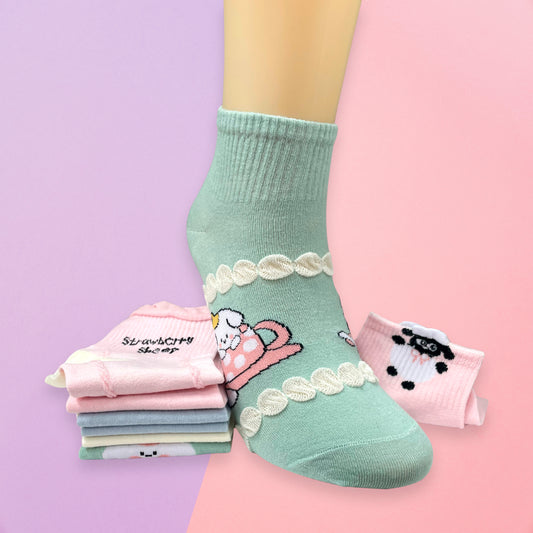 Calceta Tobillera Para Dama Paquete 10 Pares Cómodos Algodón Lindos Suaves Estampado Ye Store