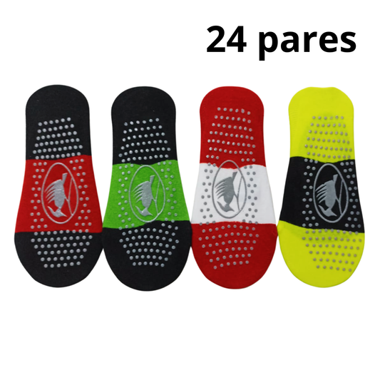 Paquete de 12 a 24 Calcetines Antiderrapantes para Dama – Tipo Invisible, Multicolor con Silicón en Suela y Talón